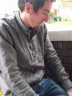 And so, 9 months and 1 week pregnant, I waddled into the fabric store seeking air conditioning and all the makings of a lightweight linen shirt for Luke. I left with a challenging yet perfect pattern, some gray linen, and the delusion that moms of newborns have any time to sew.